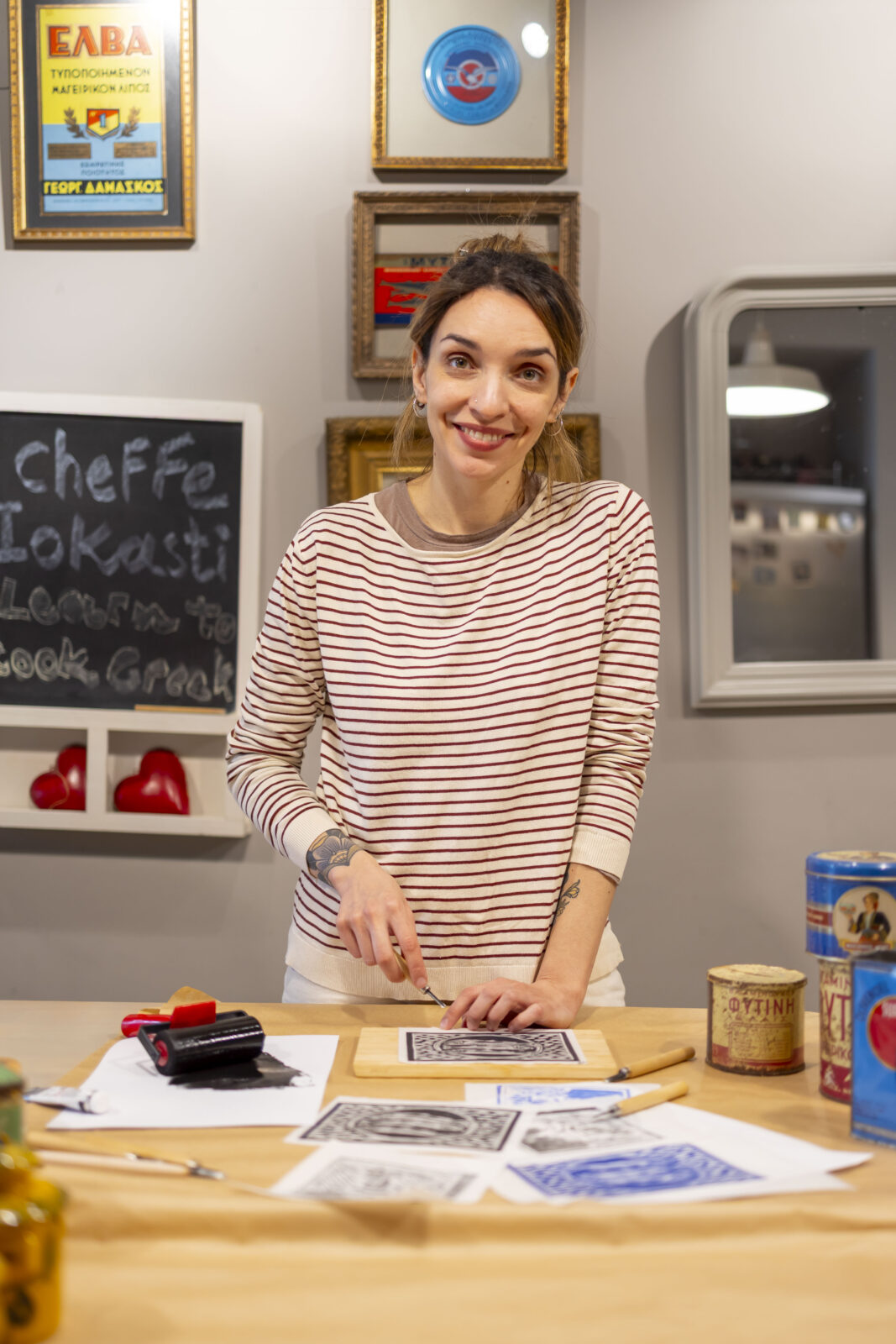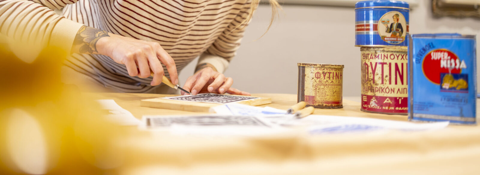 The journey concludes with a guided linocut workshop, where participants create a personal artwork inspired by Thessaloniki’s identity, its history, architecture, daily life, and gastronomy.